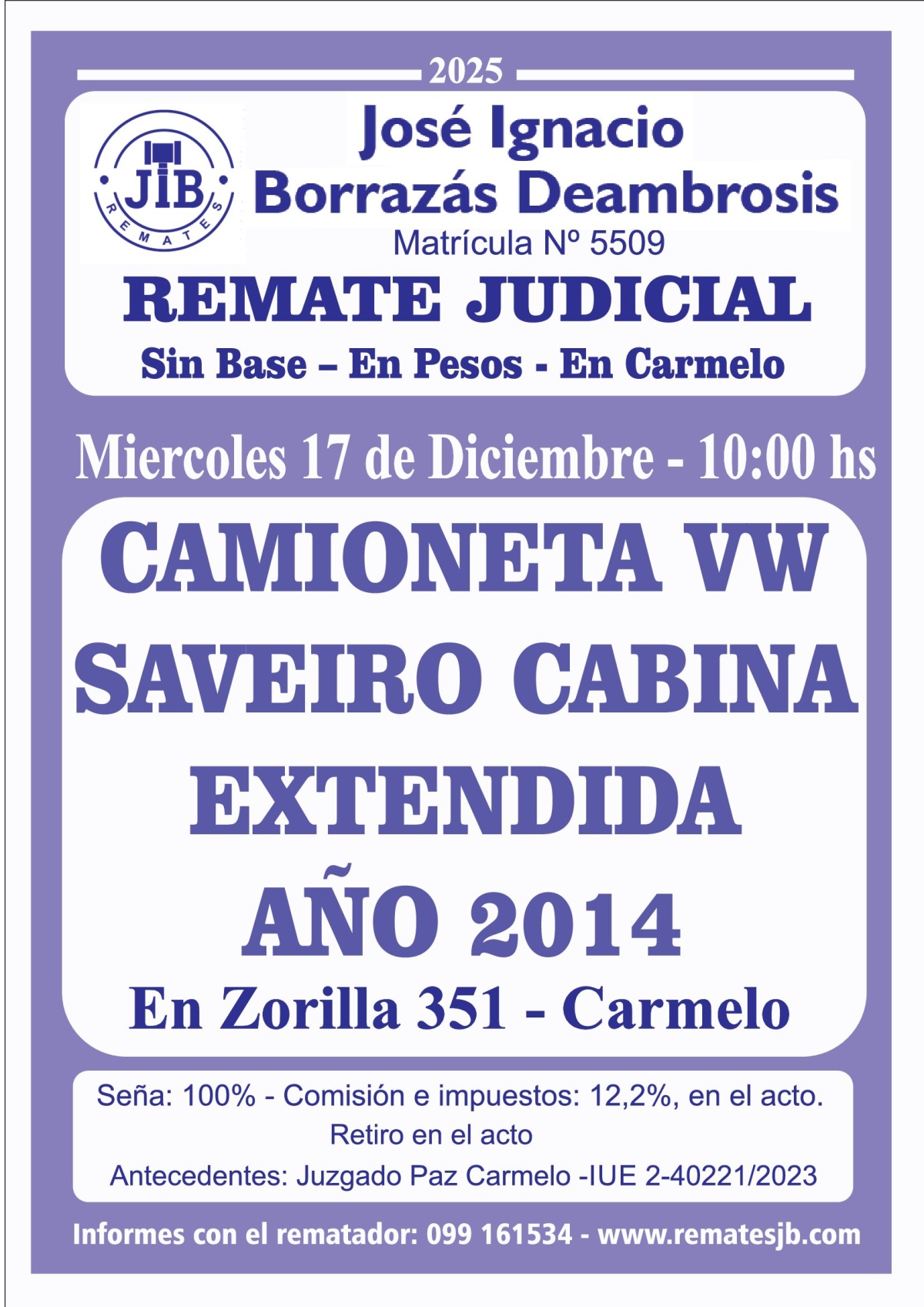 Estoy interesado/a en: 57613, Remate judicial VW Saveiro cab ext año 2014.